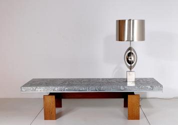 L 035 YD Table lamp by maison charles with metal shade, signed. France 1970