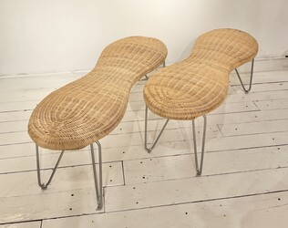 S 171 SC pair of Rattan Peeling Peanut Shape Bench in Wood & Steel from Ikea